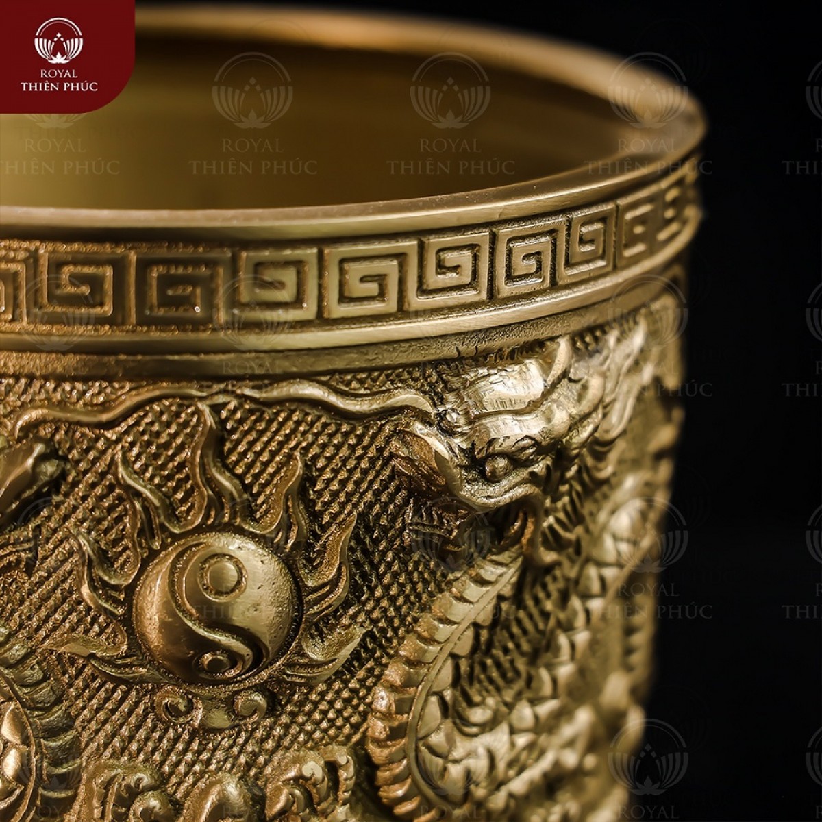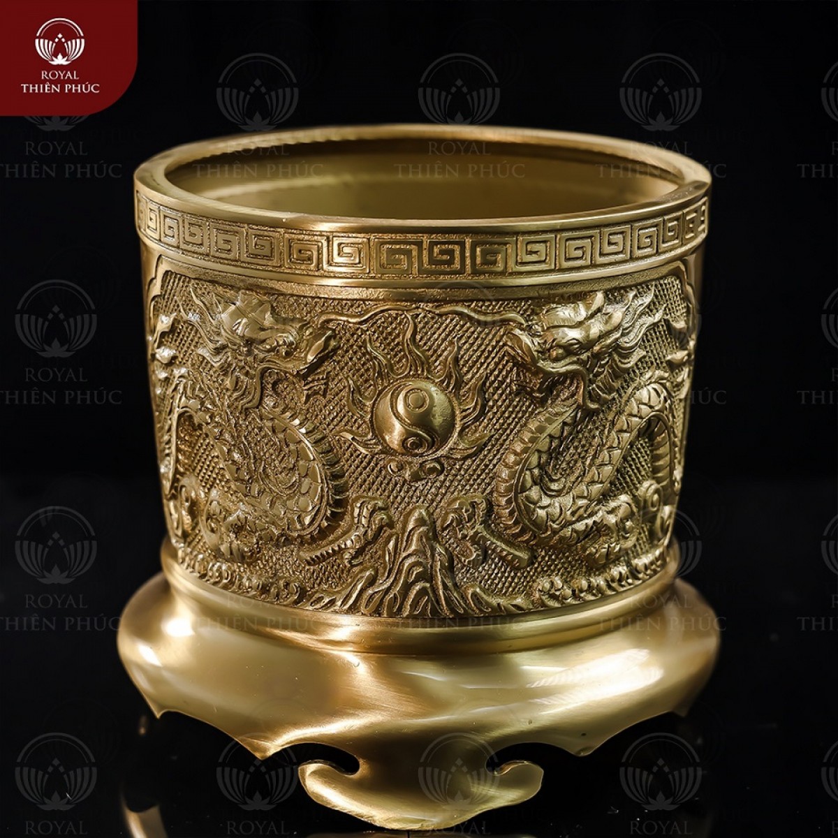 Với mẫu Bát hương đẹp đường kính 14cm chạm song long bằng đồng vàng mộc này, các bạn có thể thấy nét sang trọng và rạng ngời qua gam màu.
