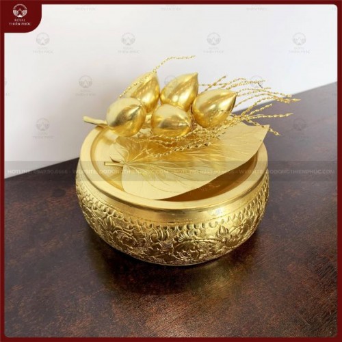 Bộ cơi trầu chính là sản phẩm được rất nhiều gia chủ quan tâm và ý nghĩa tâm linh phong thủy sâu sắc. Dưới đây là mẫu sản phẩm Bộ cơi trầu cau đồng vàng của Đồ đồng Thiên Phúc.