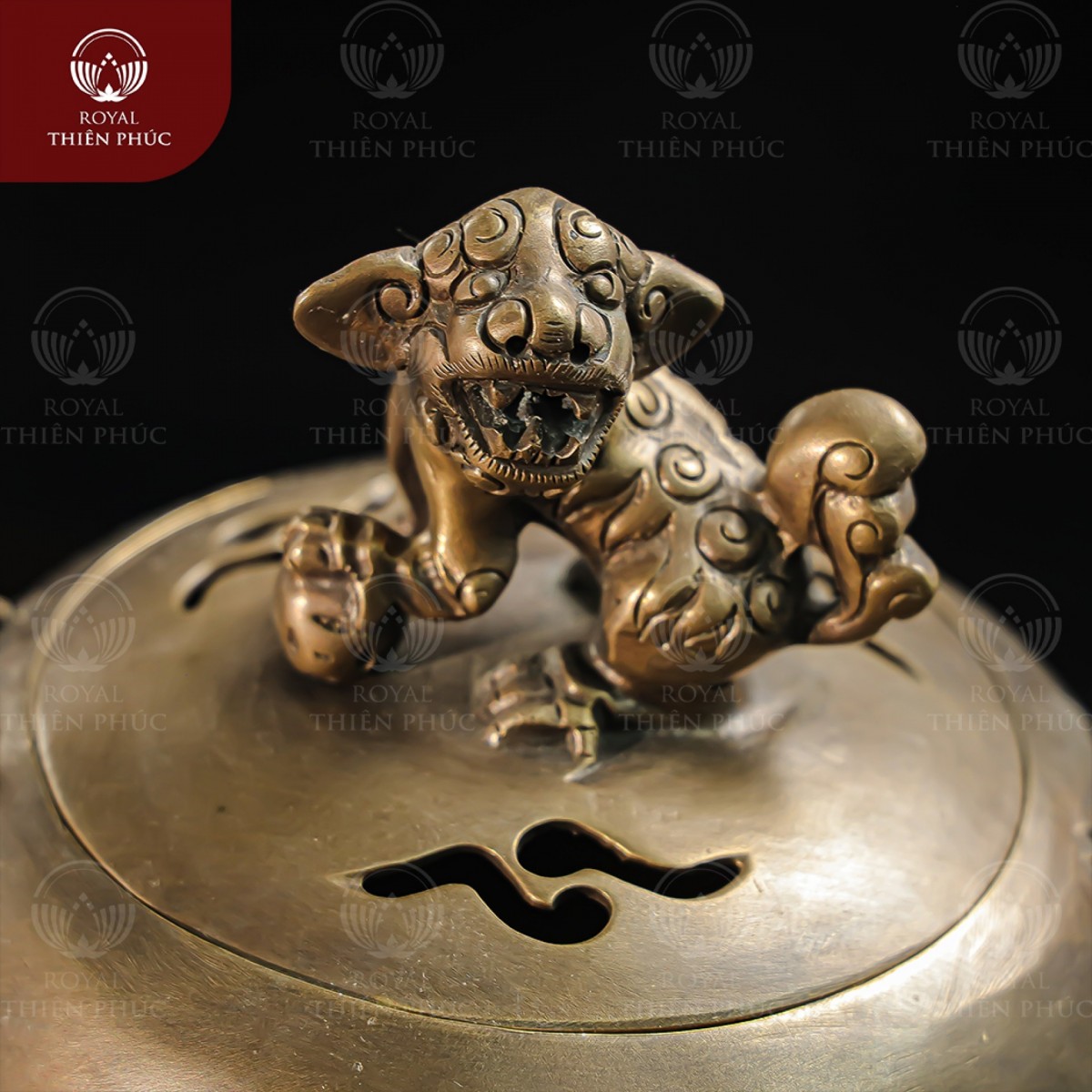 Nội thất phòng thờ sẽ thêm phần tôn nghiêm với sự hiện diện của đỉnh cầu thất lân đồng vàng hun cao 40cm. Xin mời các bạn cùng chiêm ngưỡng tác phẩm bên dưới của dodongthienphuc.com!
