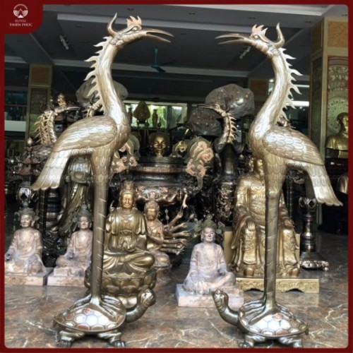 Đôi hạc thờ chính là một trong những sản phẩm mang ý nghĩa vô cùng sâu sắc và là sản phẩm trang trí. Dưới đây là sản phẩm đôi hạc thờ bằng đồng cao 1m7 khảm tam khí của Đồ đồng Thiên Phúc.