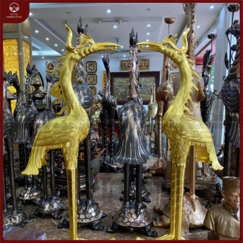 Mẫu hạc thờ chính là sản phẩm trang trí không gian thờ cúng và cũng mang ý nghĩa sâu sắc. Dưới đây là mẫu sản phẩm Hạc thờ dát vàng 9999 cao 1m92 cao cấp của Đồ đồng Thiên Phúc.