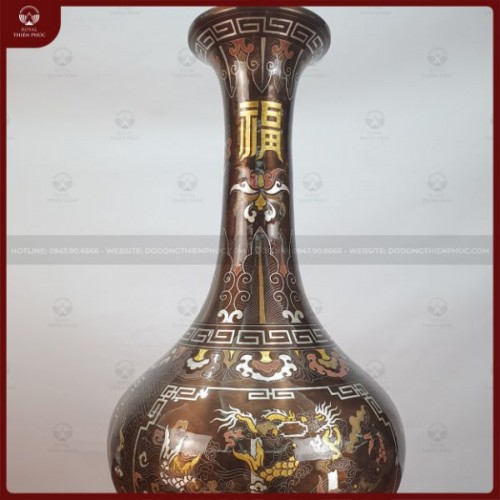 Lọ lộc bình được xem là sản phẩm mang tới nhiều tài lộc và vượng khí cho gia chủ. Dưới đây là mẫu Lọ lộc bình củ tỏi bằng đồng đỏ khảm ngũ sắc cao 68cm độc đáo của Đồ đồng Thiên Phúc