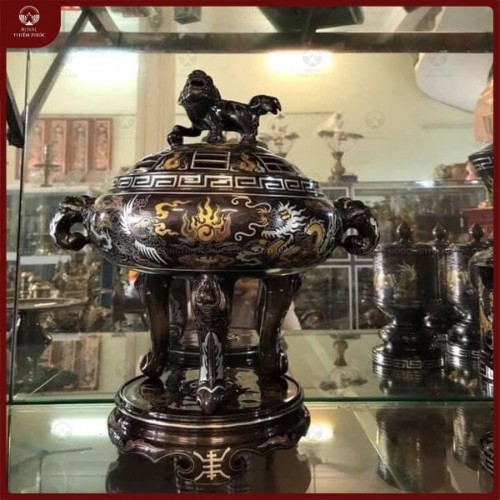 Lư đốt trầm được đánh giá cao bởi tính thẩm mỹ và được rất nhiều gia chủ quan tâm. Dưới đây là mẫu Lư đốt trầm đồng đỏ khảm ngũ sắc cao 27cm của Đồ đồng Thiên Phúc.