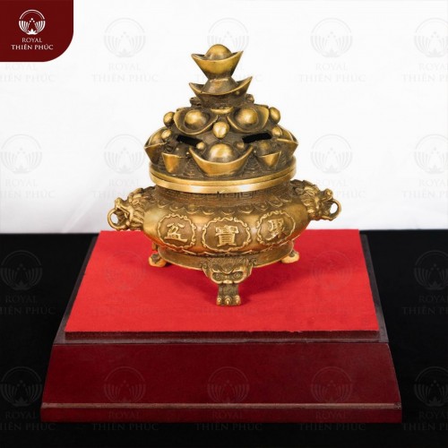 Nhu cầu sử dụng Lư đốt trầm hương bằng đồng vàng nắp thỏi tiền kích thước 14x16cm ngày càng lớn. Bên cạnh yếu tố phong thủy, nó còn mang lại sự thư thái trong tâm hồn. Xin mời các bạn cùng tham khảo gợi ý dưới đây của dodongthienphuc.com!