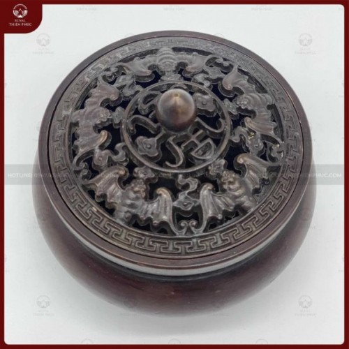 Hiện nay, lư đốt trầm bằng đồng thường được mọi người quan tâm và sử dụng nhiều bằng những tính năng vượt trội. Dưới đây là mẫu sản phẩm Lư đốt trầm nắp dơi Ngũ Phúc của Đồ đồng Thiên Phúc