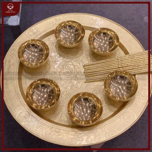 Mâm bát đũa chữ Phúc đồng vàng