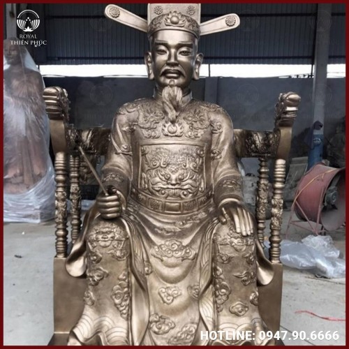 Bức tượng được đúc từ đồng đỏ nguyên chất, xử lý màu giả cổ với sắc nâu ánh vàng trầm ấm. Gam màu này gợi nên nét cổ kính, linh thiêng và trang trọng. Bề mặt đồng được đánh bóng nhẹ, vừa giữ nét mộc mạc của kim loại quý, vừa làm nổi bật từng chi tiết chạm khắc tinh tế. Sắc đồng trầm tượng trưng cho thời gian, cho sự trường tồn và bền vững – một lựa chọn hoàn hảo cho không gian thờ tự truyền thống Việt.